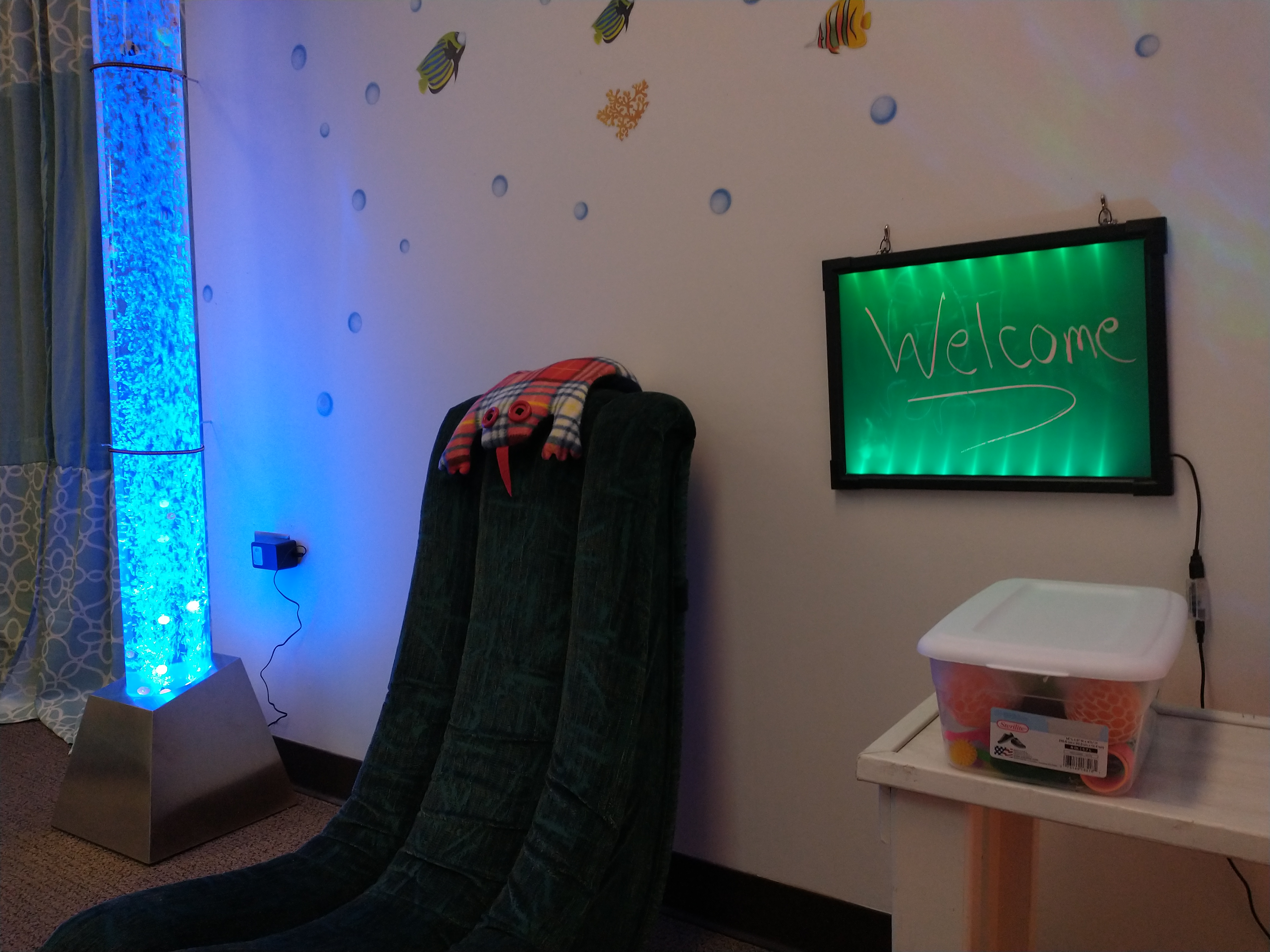 DWI opens new Sensory Room Retreat for Clients and Staff. Thanks to a grant from Festival Of Trees, the project guided by Carrie McGinnes and Laura Clay was over five months in the making. The room will provide a haven for Clients and Staff who need time to desensitize from the over stimulation and stresses from the day.